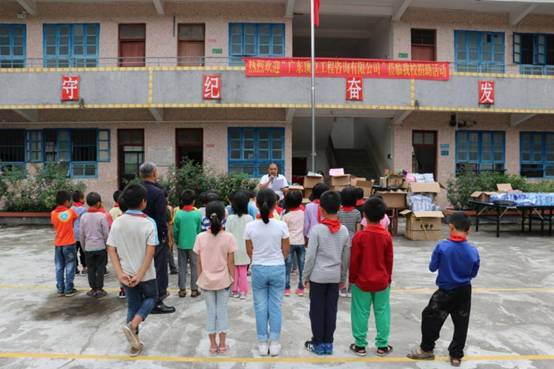 早上九點,我們帶著一如既往的初心從公司樓下出發(fā), 從廣州前往肇慶廣寧縣石咀鎮(zhèn)。經(jīng)過連續(xù)不斷的蜿蜒山路,三個多小時后我們到達(dá)了石咀鎮(zhèn)。石咀鎮(zhèn),這個我們來了三年的地方,感覺是那么的熟悉,從鎮(zhèn)上到周圍的村莊都能看到小學(xué)生的身影。為了不打擾學(xué)生休息,我們選擇下午14:00到達(dá)建中小學(xué)。此時已經(jīng)有學(xué)生陸續(xù)返校,見我們到來,學(xué)生們打開了校門,不約而同喊著“歡迎歡迎”,臉上洋溢著歡欣的笑容。建中村委、建中小學(xué)的校長、老師以石咀鎮(zhèn)中心小學(xué)校長及副校長及學(xué)生們已集中等候,公司購買的打印機(jī)、書包、校服、體育用品、學(xué)習(xí)文具以及圖書均擺放在教室門口的紅旗下。根據(jù)學(xué)校的安排,現(xiàn)場舉辦了簡單而有意義的捐贈儀式,為感謝公司的捐助,校長還贈送了 “大愛無疆,捐資助學(xué)” 的錦旗。
