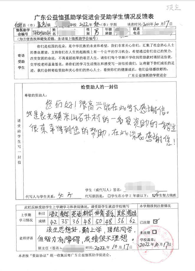 ——2022年“訪貧助學(xué)化州行”慈善助學(xué)活動(dòng)受助學(xué)生情況反饋